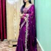 অরিজিনাল জিম্মি চু ফেব্রিকে তৈরি এই শাড়িজুড়ে রয়েছে স্টানিং সিকুয়েন্স ও হেভি এমব্রয়ডারি কাজ।